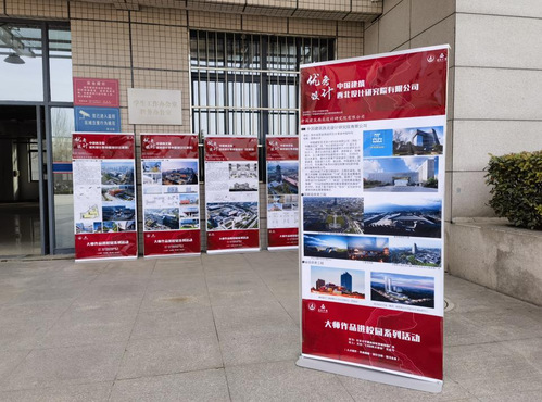 此次活动特别对接中国建筑西北设计研究院有限公司,通过一系列展板国家和省级设计大师、优秀作品的展览展示,为同学们展出一线建筑行业新成就与卓越建筑师风范。宣传工作“线上+线下”同发力,线下展板展出配合线上公众号推文,大幅提高大家的参加热情与参与深度。