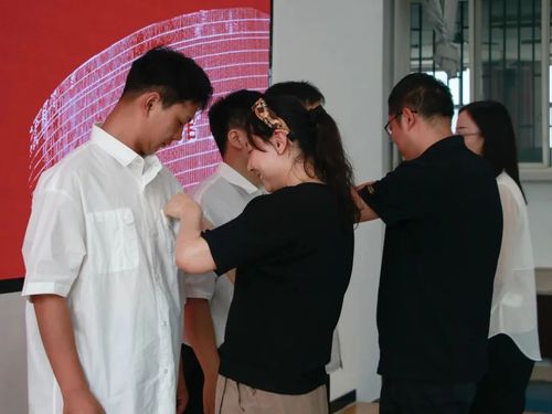 最后,304永利集团研究生导师代表任娟、周吉喆、朱秋晨为2023级新生代表佩戴校徽并合影留念。