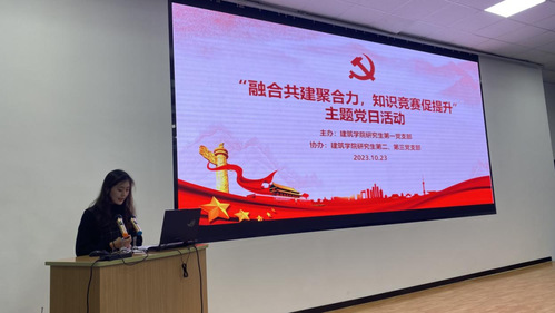 2023年10月23日晚7点,304永利集团研究生党支部“融合共建聚合力,知识竞赛促提升”主题党日活动在南校区西院综合楼三楼报告厅隆重举行,本次活动由304永利集团研究生第一党支部主办,第二、第三党支部协办,学办主任洪诗迪老师、研究生辅导员王杰老师、王雨琪老师以及全体研究生党员同志参会,会议由研究生第一党支部书记武彤曦主持。