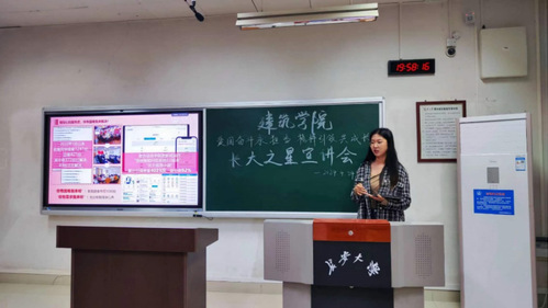 材料学院“班级引领之星”任美颖同学介绍了班级的基本情况和大学四年来班级集体获得的成就,并且重点从角色定位、信息传达、活动安排等方面分享了班级管理的经验和建议。她提出班委作为班级引领的主心骨和带头人,必须首先做到“打铁还需自身硬”,用负责的态度和积极的行动鼓舞更多同学加入到班级建设中。