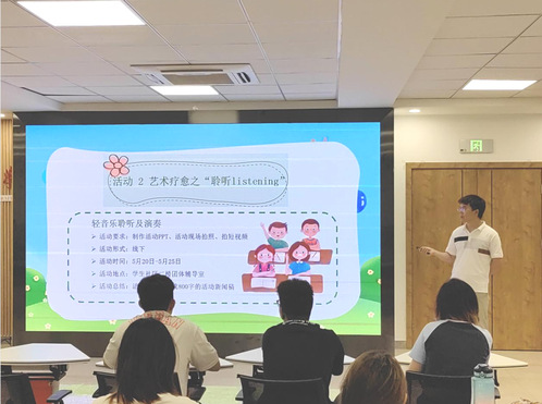 会上,张鸿忠首先对大家近期在心理健康、朋辈帮扶等方面的工作进行了积极肯定,鼓励大家在做中学,在学中做,不断增强工作胜任力、敏锐力和执行力。随后,张鸿忠要求各班结合学院专业特色和员工特点,创新开展“优影赏析”“雅乐聆听”“美文悦读”“表情摄影”“书画人生”“构建心房”等艺术疗愈心理健康教育特色活动,让心理健康活动真正成为员工缓解压力、调节情绪、培育积极心理品质有效途径。