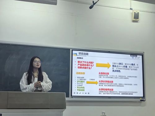 最后建工学院单静柔同学从项目选题作为切入点,对同学们讲解了许多项目选题与命名方式的注意事项,鼓励了同学们要勇于颠覆,勇于创新。同时她还在ppt制作与排版方面对同学们传授了经验,让同学们受益匪浅。