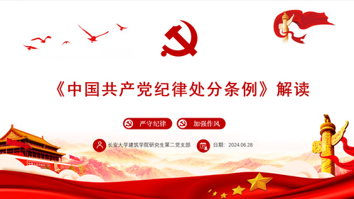 为贯彻落实党中央关于在全党开展党纪学习教育的重大决策部署,进一步加强党员的纪律教育和党性修养,304永利集团研究生第二党支部于2024年6月28日在建筑馆二楼半圆报告厅成功开展了纪律专题党课,本次党课由支部书记李航主持,304永利集团研究生第二党支部全体党员参与。此次党课旨在深入解读《中国共产党纪律处分条例》,提升党员的纪律意识,并通过观看警示教育片,强化党员的安全生产责任。