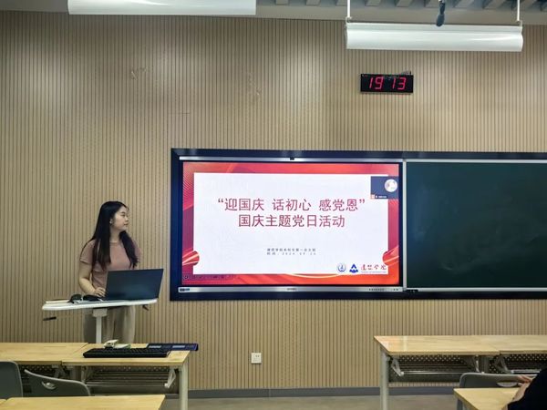 本科员工党支部于9月27日晚,在北校区修远教学楼WX2200举办“迎国庆·话初心·感党恩”国庆主题党日活动,活动由本科生第一党支部书记王雨琪老师主持,全体党员以线上线下相结合的方式参加。