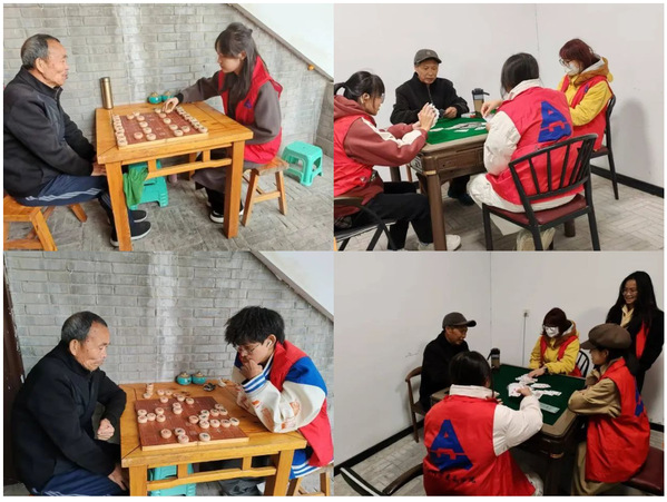 打扫之余,志愿者们还当起了老人们的“棋友”“牌友”。大家你来我往,兴致勃勃,不时话起家常。志愿者们用他们的真诚和热情,为老人们带来了欢乐和温暖,而老人们的乐观和豁达也深深地感染了志愿者们。老人与志愿者们共同度过了一段温馨的时光,小院也在浓厚的情谊中显得格外温馨、和谐美好。